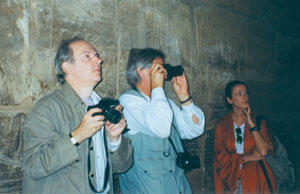 Robert and Michael Baigent glued to the walls of an ancient Egyptian Temple – Michael’s step-daughter Emma is looking pensive…